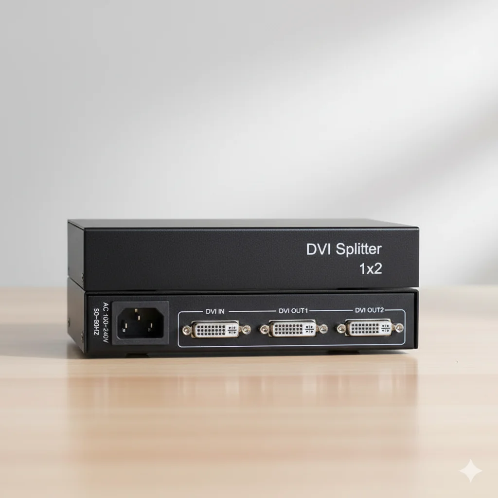 DVI Video Splitter 1 In 2 Out Plug & Play HD Signal Distributor for Multi-Screen Display