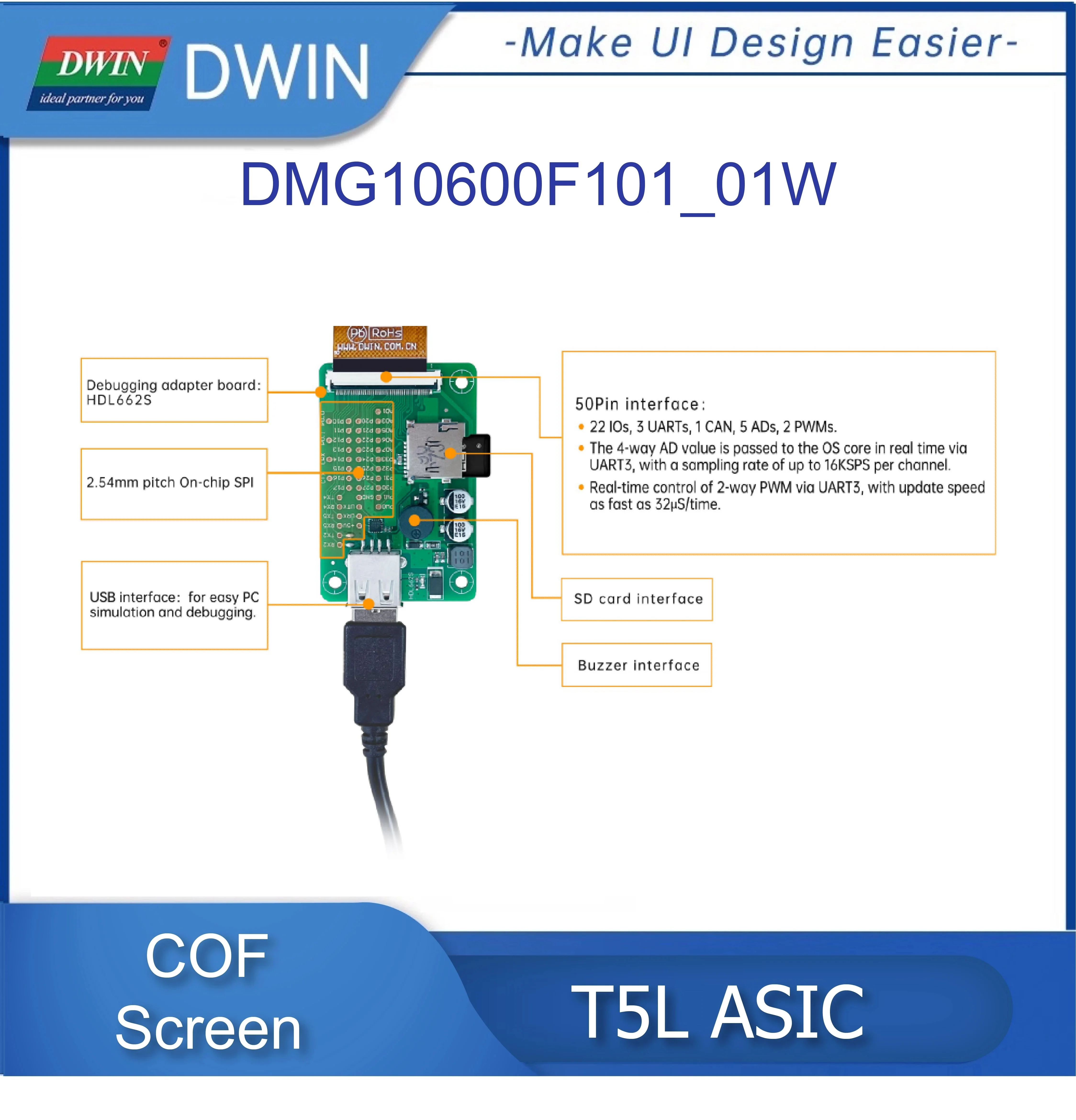 DWIN 2,5-дюймовый HMI разрешение 10,1*1024 пикселей экран 600 M цвета TN TFT ЖК-дисплей Arduino ESP32 STM32 панель COF структура