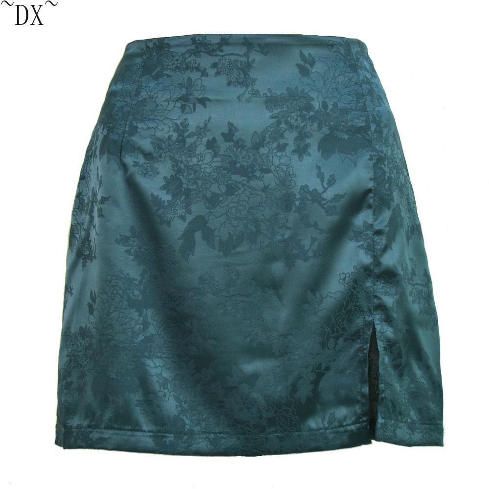 DX~~ Весенне-летняя женская короткая юбка с взрывным разрезом, сексуальная жаккардовая атласная юбка на молнии с высокой талией, женская юбка XL
