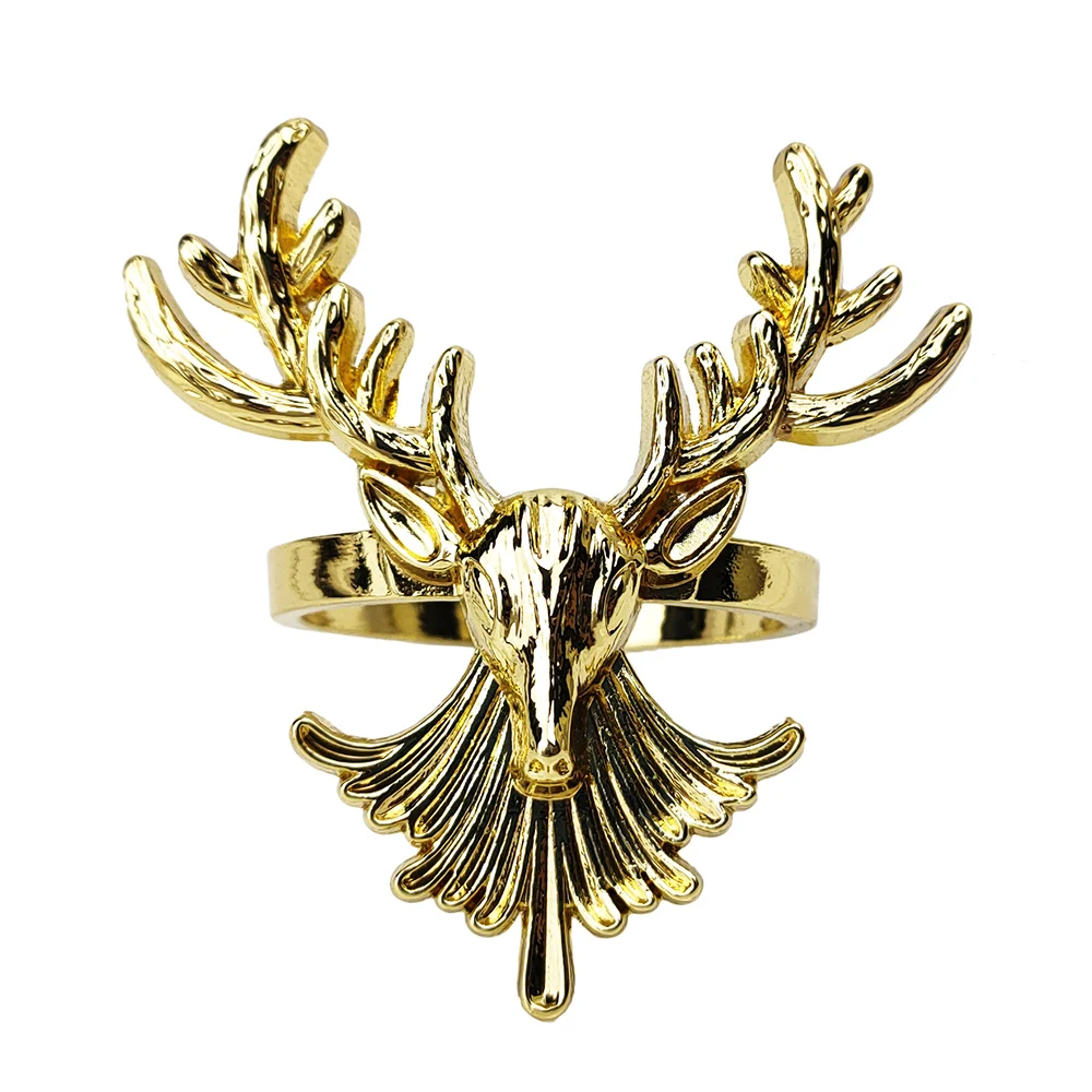 6 Pcs/Lot Stag Napkin Rings Christmas Table Decoration Metal Serviette Holder Gold Silver Deer Head Festival Decor