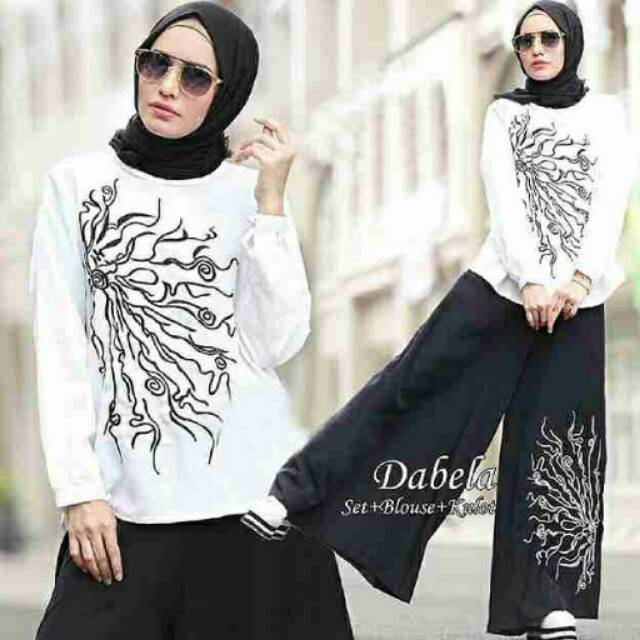 Ready Now!! Dabela (top+celana kulot+pashmina) fit XL besar LD106. Matt balotely kombi bordir. R@210. Ori glamz