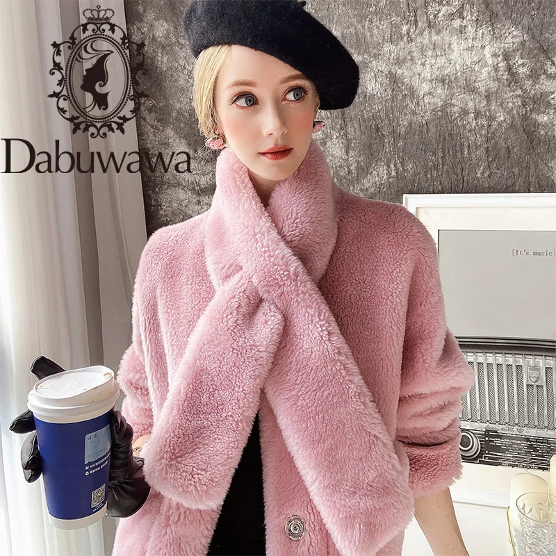 Dabuwawa женские Овцы пальто с мехом из-за мягкого и милое стильное шарф воротник, плотная теплая куртка-пуховик Куртка сплошная Женская осень-з...