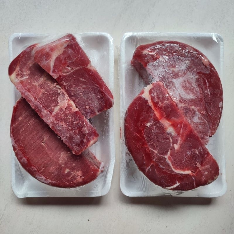 Daging sapi untuk rendang, rawon, soto, dll. Kadar lemak 5-10%. Daging sapi import dari Australia atau New Zealand tergantung ketersediaan stok. HALAL.