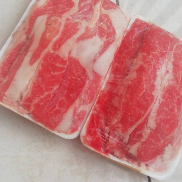 Daging slice cocok buat bbq grill dan teriyaki atau shabu shabu. Berat 500grm ads hrga reseller bisa chat langsung. Lokasi depok