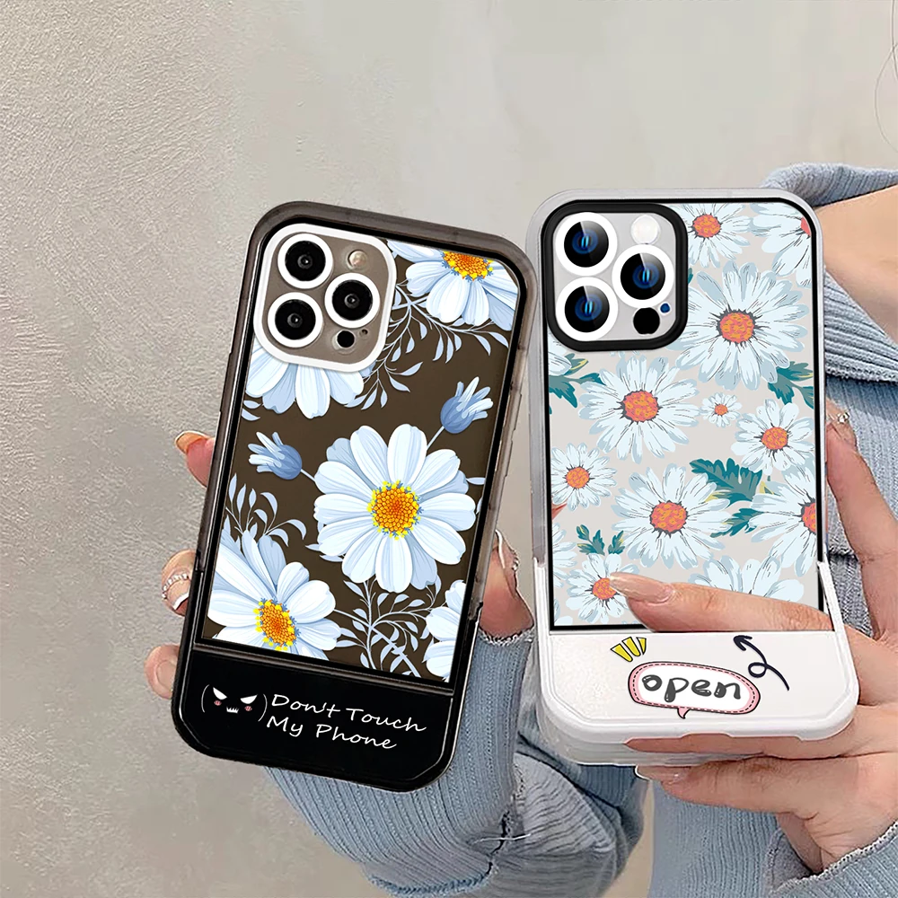 Daisy Floral Stand Holder Case for iPhone 14ProMax 14Plus 13 12 11 Pro Max Soft Silicone Coque Transparent Protection Back Cover