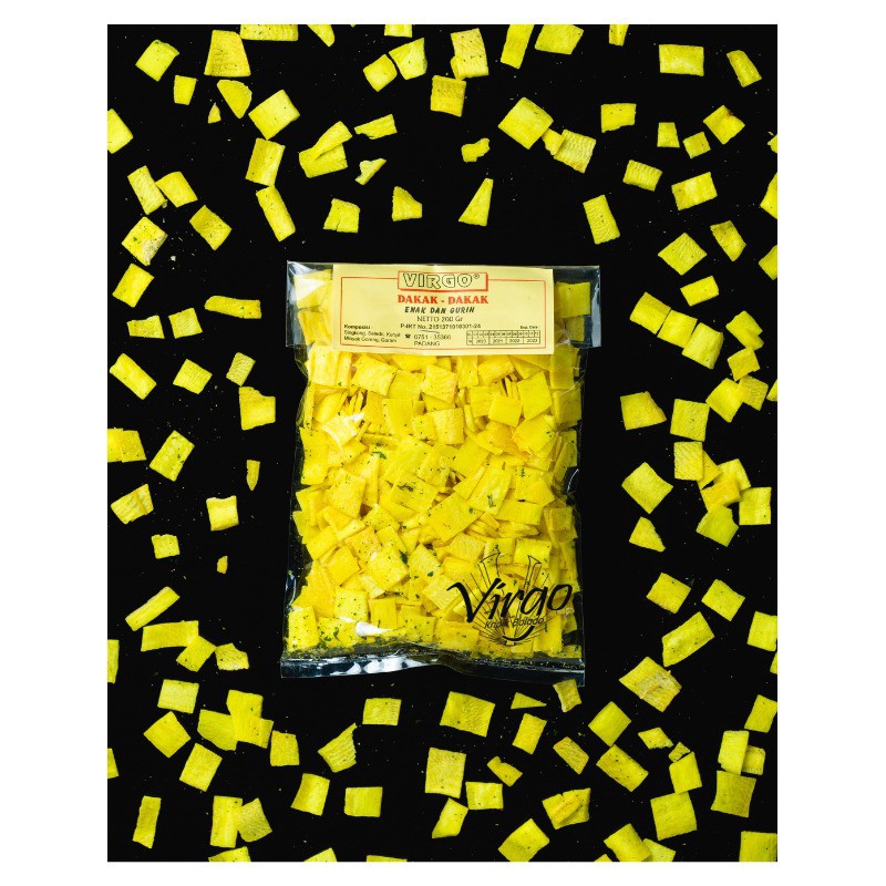 Dakak - Dakak Tipis Virgo ini singkongnya setelah di iris tipis dan di potong petak/kotak, lalu di rebus dulu dengan rebusan air kunyit hingga empuk, lalu di tiriskan. Setelah ditiriskan langsung di goreng dengan minyak kelapa. Setelah di goreng di bumbui dengan garam dan daun seledri. Untuk rasa sudah pasti gurih asin.
