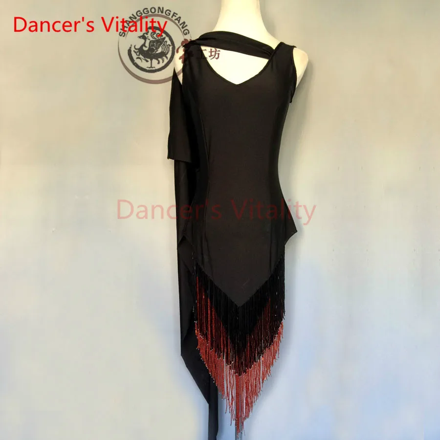 Dancer's Vitality New Brand Tassel Double V Collar Latin Dance Dress Women Salsa Samba Tango Cha-Cha Dancing Dresses For Kids