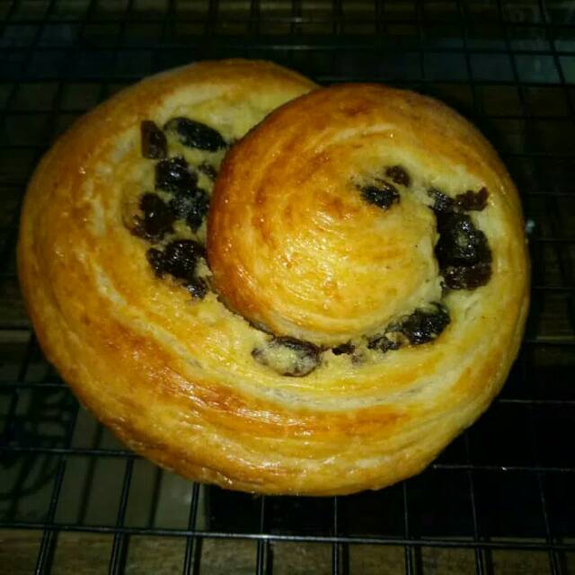 Roti adonan berlapis yang mempunyai tekstur renyah diluar dilengkapi dengan buah kismis yang manis