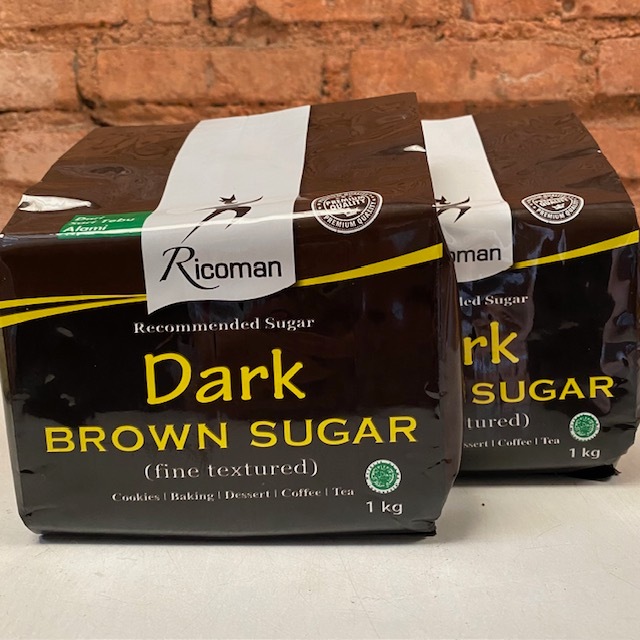 Ricoman Dark Brown Sugar berwarna coklat gelap dan aroma Strong karamel. Sehingga menghasilkan rasa yang lebih legit pada makanan dan minuman. Tekstur lebih lembab dibanding varian Light sehingga dapat membuat tekstur produk makanan tertentu menjadi lebih sempurna.