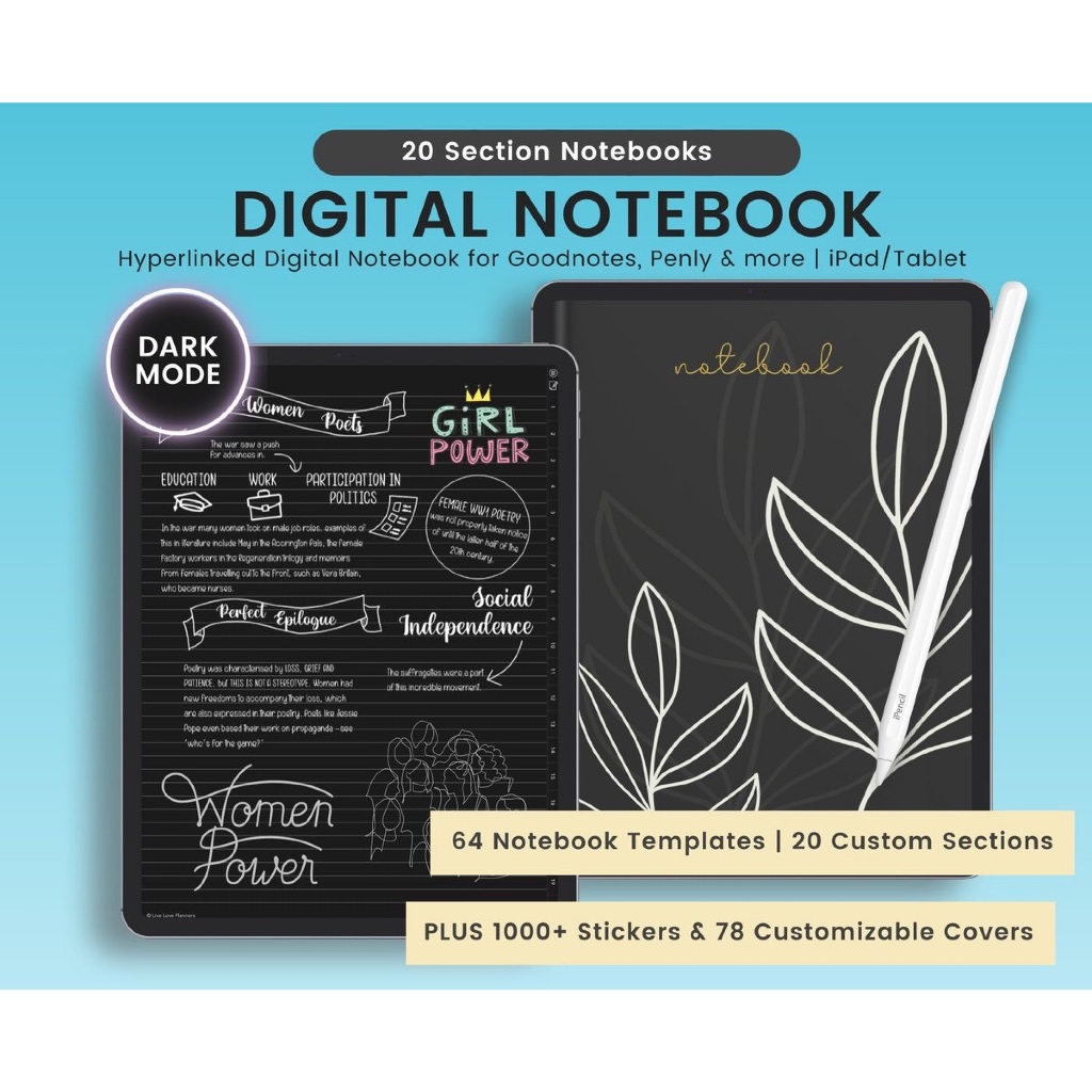 2 Digital Notebooks (Dark Mode Colourful & Dark Mode White)