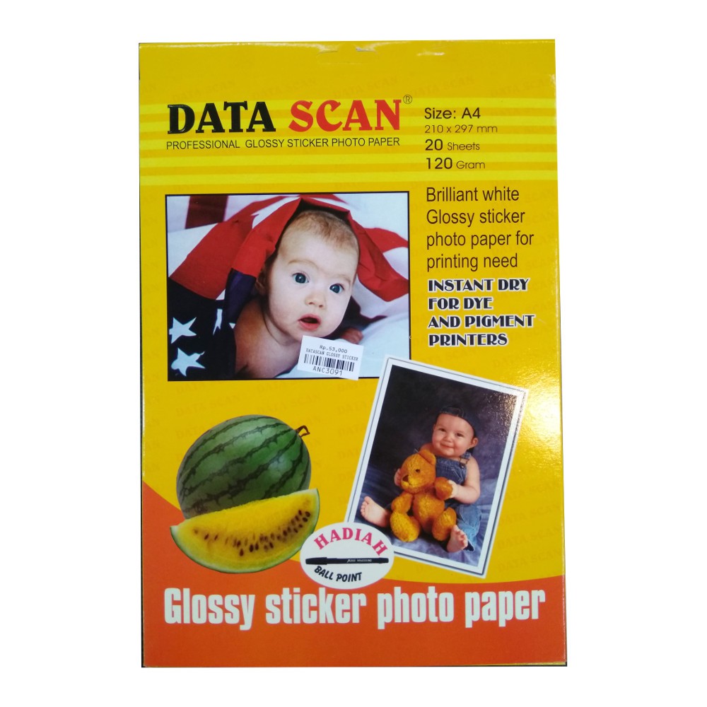 Data Scan Glossy Sticker Photo Paper A4 120gsm adalah kertas foto sticker glossy ukuran A4 dengan berat 120gsm yang cepat kering dengan glossy finish yang baik untuk penggunaan rumah atau kantor.