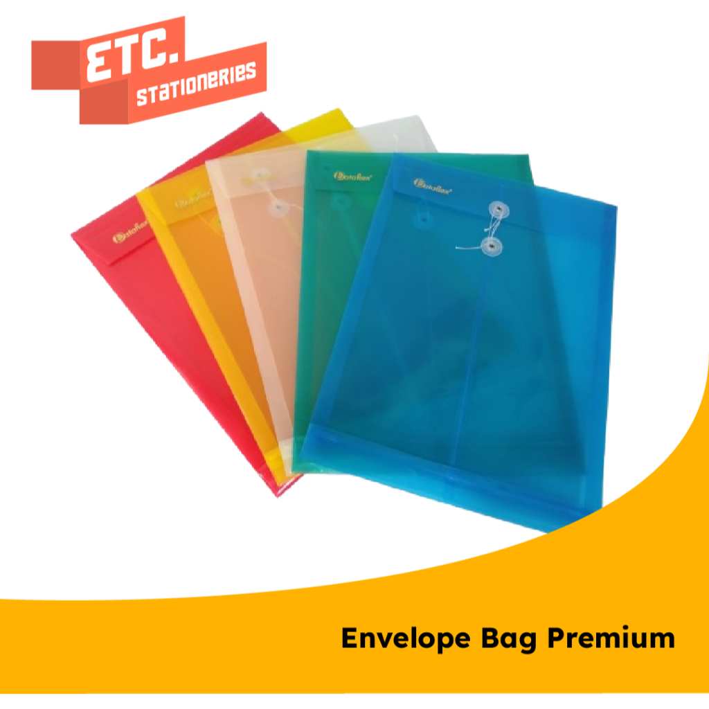 Ecoflex Envelope Bag / Map Tali Spine tersedia dalam 5 varian warna merah, kuning, hijau, biru, transparan. Cocok digunakan untuk pengarsipan laporan kerja harian, seminar, rapat, dan kebutuhan pengarsipan dokumen penting dirumah.