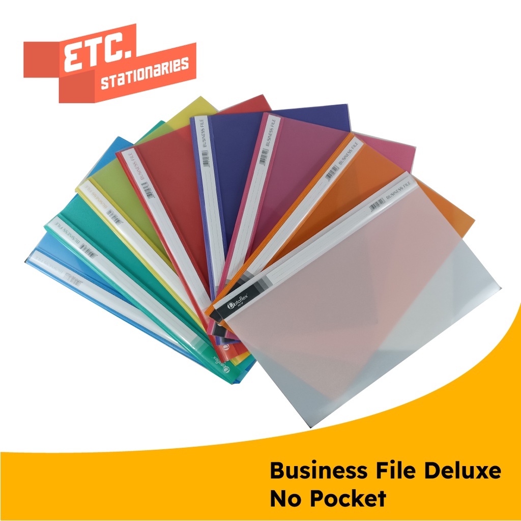 Map business warna- warni ini terbuat dari bahan PP yang tebal dan banyak digunakan untuk pengarsipan baik di kantor, sekolah maupun rumah tangga. Map ini terdiri dari bagian cover yang tembus pandang lengkap dengan label punggung yang dapat dituliskan judul. Label ini dapat diganti sesuai kebutuhan. Bagian belakang map ini berwarna- warni buram (tidak tembus pandang) dengan 8 pilihan menarik yang sangat cocok untuk kebutuhan pengarsipan. Tersedia dalam 8 warna: merah, kuning, hijau, biru, putih, orange, violet dan pink.