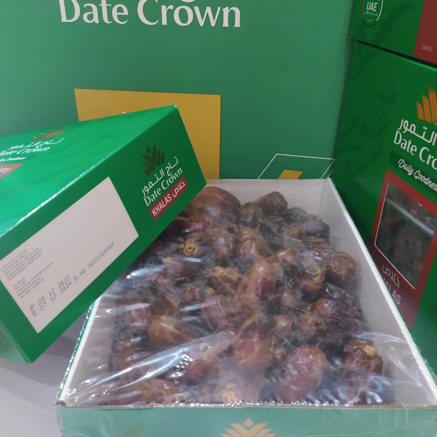 Kurma Khalas Date Crown (Kurma Mahkota) ini sangat lezat meleleh di mulut. Kurma Khalas adalah kurma yang paling banyak diproduksi di Uni Emirat Arab. Rasanya lembut, sedikit berair, dan sangat manis. Juga cukup berserat karena struktur kulitnya. Tapi jangan tertipu, dibawah kulit itulah terdapat kurma terlezat yang bisa Anda nikmati.