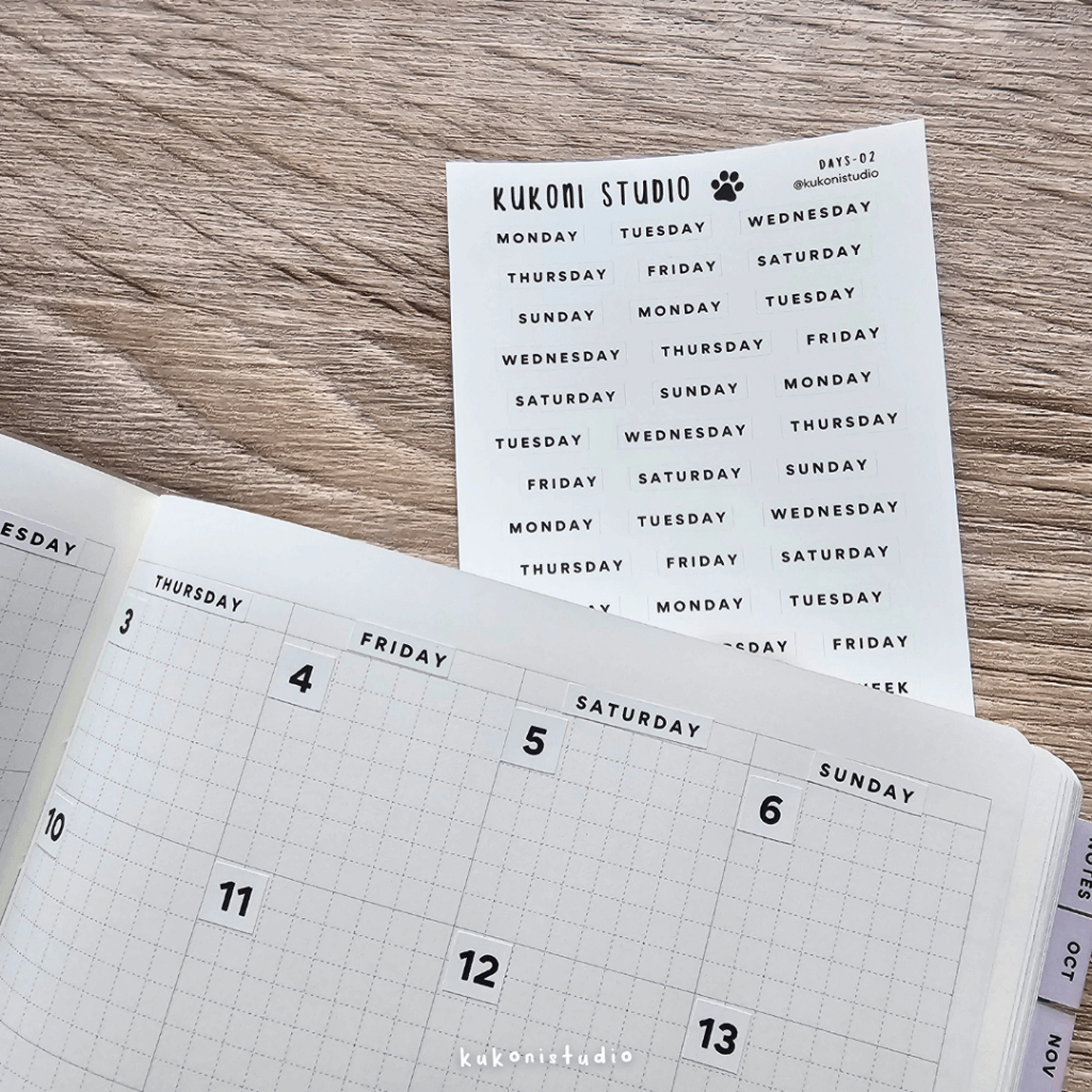 Date & Day Sticker Bundle (Vinyl Sticker) | Kukoni Studio