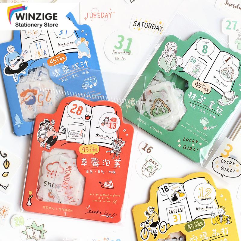 Date Sticker Set Month Weather Stickers Jouurnal Diary Decor 45Pcs