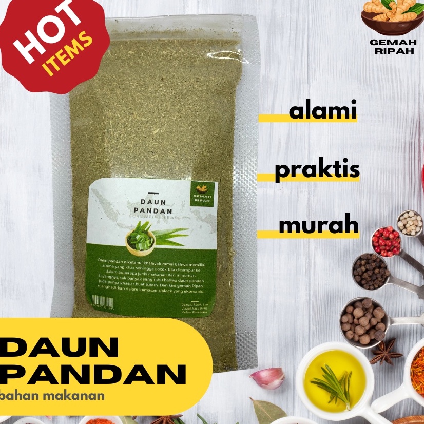 Gemah Ripah merupakan toko retail yang menyediakan bumbu serta bahan makanan lainnya yang tepat dijadikan teman memasak Ibu di dapur. Salah satunya adalah Bubuk Daun Pandan ini selain sangat banyak kebermanfaatannya dengan tubuh kita, citarasa yang khas nya membuat makanan menjadi lebih nikmat. Banyak kita jumpai olahan bahan makanan tersebut dalam komersial pasar.