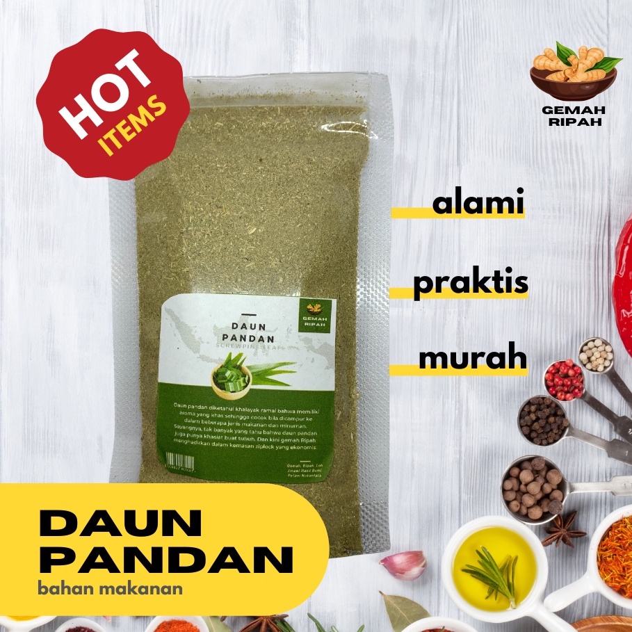 Gemah Ripah merupakan toko retail yang menyediakan bumbu serta bahan makanan lainnya yang tepat dijadikan teman memasak Ibu di dapur. Salah satunya adalah Bubuk Daun Pandan ini selain sangat banyak kebermanfaatannya dengan tubuh kita, citarasa yang khas nya membuat makanan menjadi lebih nikmat. Banyak kita jumpai olahan bahan makanan tersebut dalam komersial pasar.
