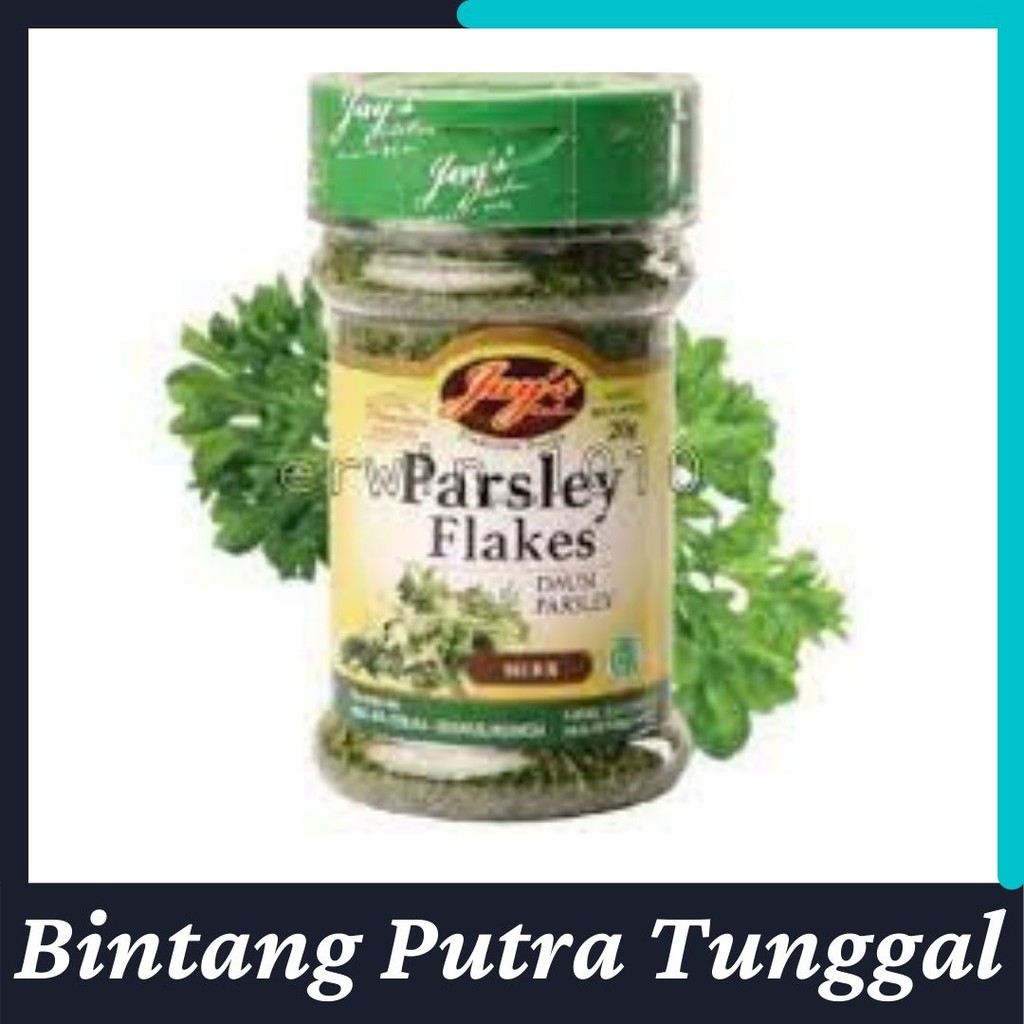 Bumbu masak daun parsley Jay's Parsley Flakes merupakan bumbu yang umum digunakan untuk masakan khas Eropa, biasa ditemukan dalam olesan roti ataupun sebagai hiasan dan penyedap masakan.