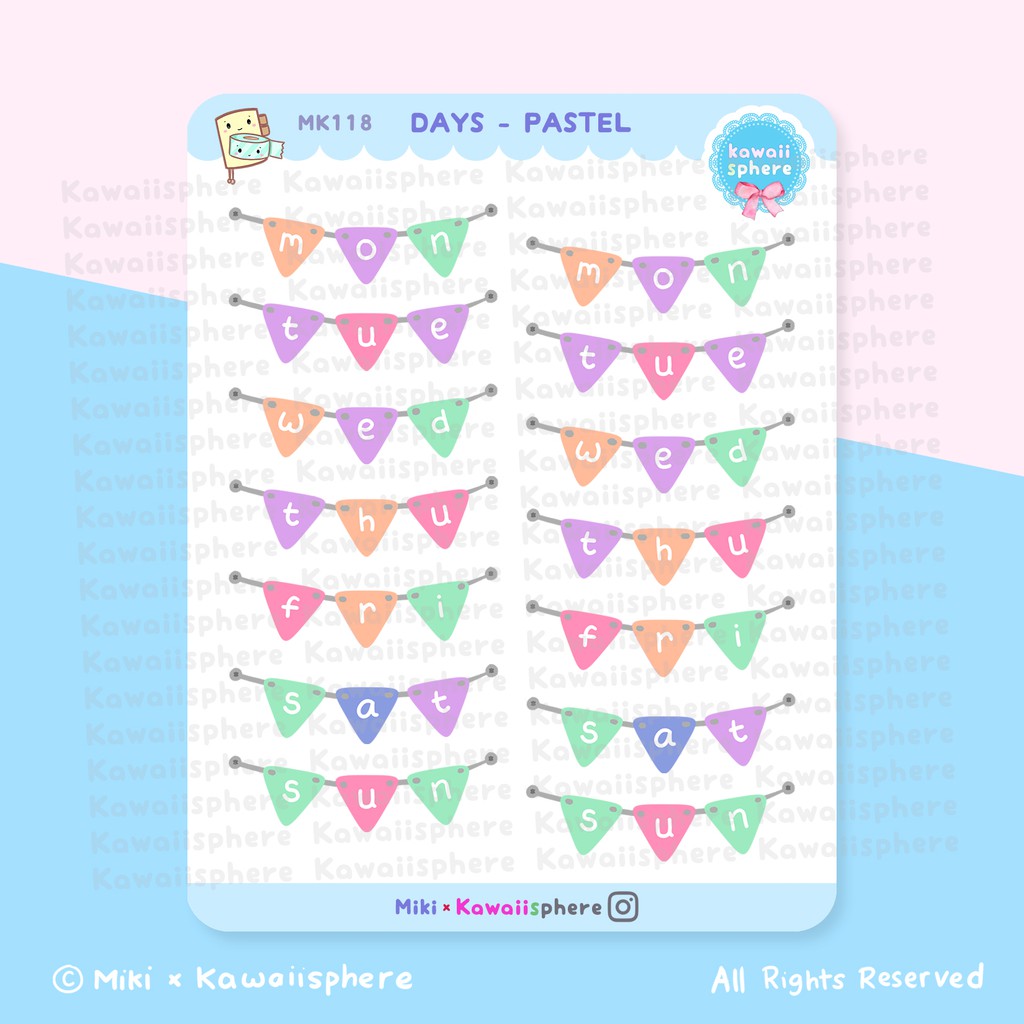 Days Pastel | Planner Sticker Hari MK118 |Writable Waterproof