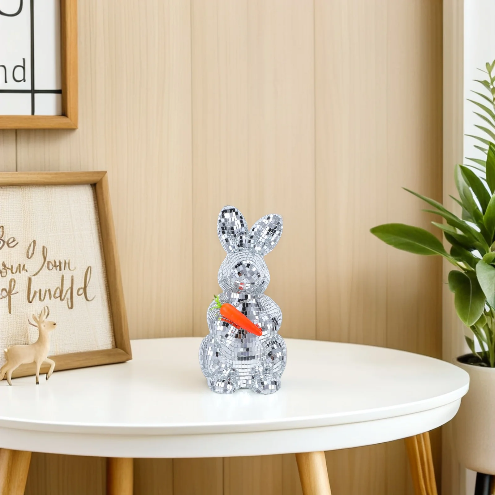 Decor Mirrored Rabbit Statue Reflective Mosaic Glass Bunny Sculpture Easter Table Centerpiece 70S Party Dance Props