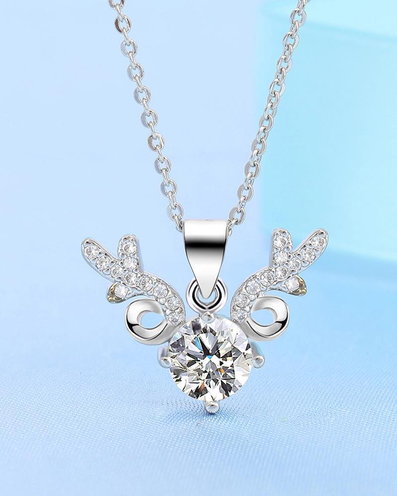 Deer Pattern Rhinestone Decor Charm Necklace, Silver