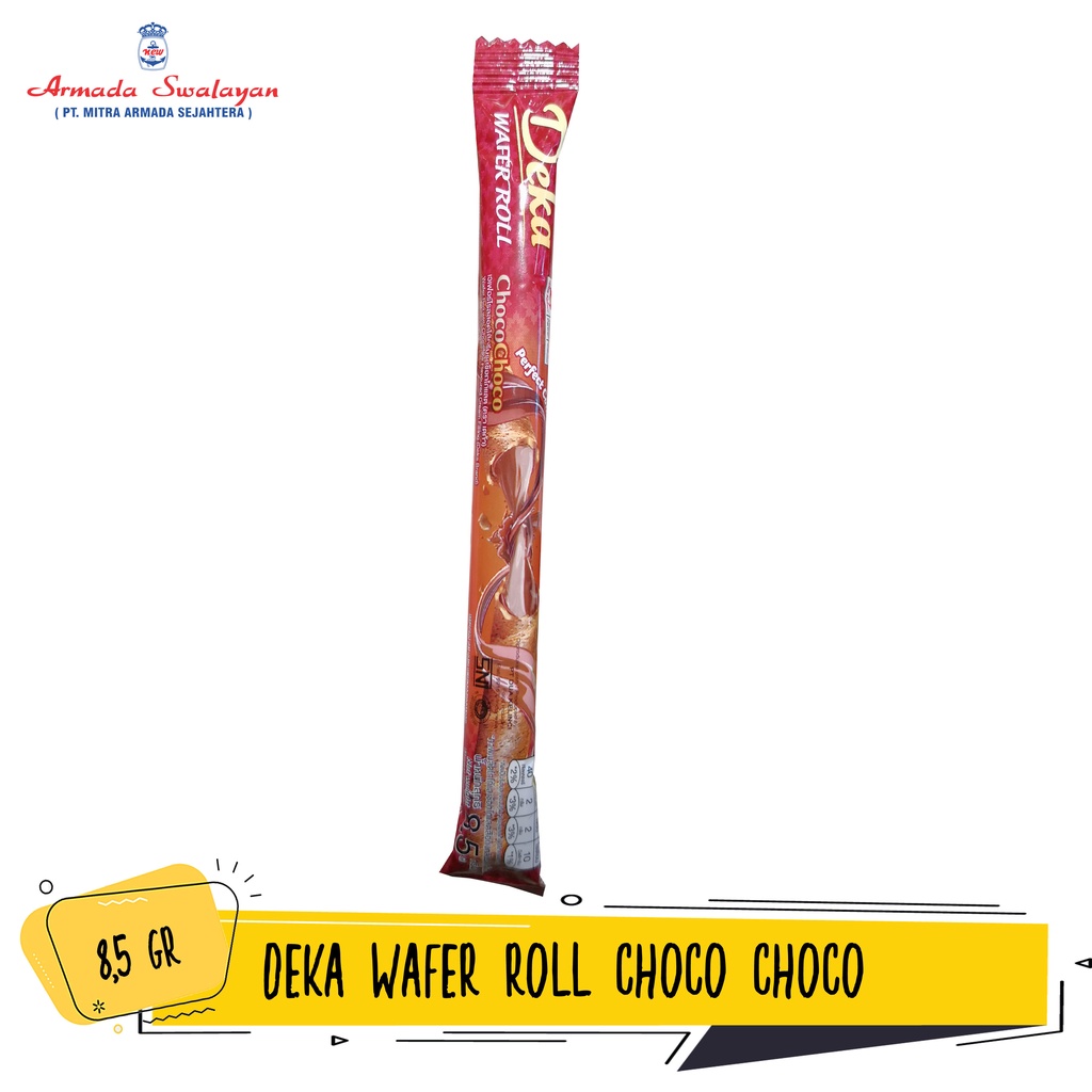 Deka Wafer Roll merupakan wafer yang berbentuk roll dengan aksen pita putih berulir yang diformulasi khusus sehingga memberikan kombinasi rasa yang istimewa dan lezat. Dengan filling cream yang lezat, membuat Deka Wafer Roll sangat cocok dinikmati untuk menemani waktu santai bersama teman dan keluarga.