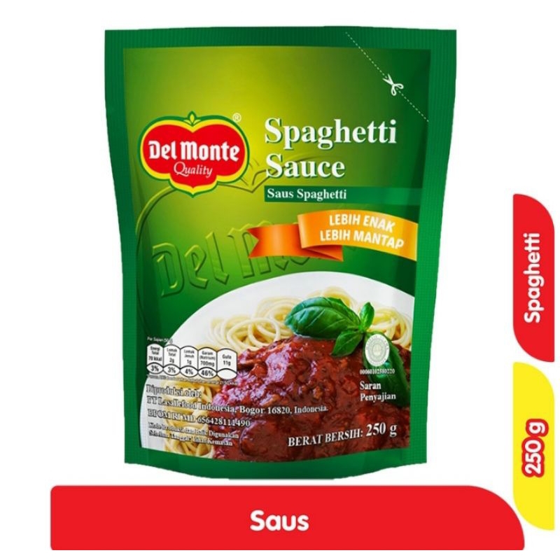 Del Monte Spaghetti Sauce 250 g adalah saus praktis untuk segala resep spaghetti, dengan rasa gurih dan sedap, menjadikan resep spaghetti jadi lebih spesial serta menyempurnakan kelezatan hidangan. Dengan komposisi saus yang sempurna, dan bahan-bahan pilihan, diolah secara higenis dan sangat praktis. Tersedia dalam kemasan pouch 250 g.