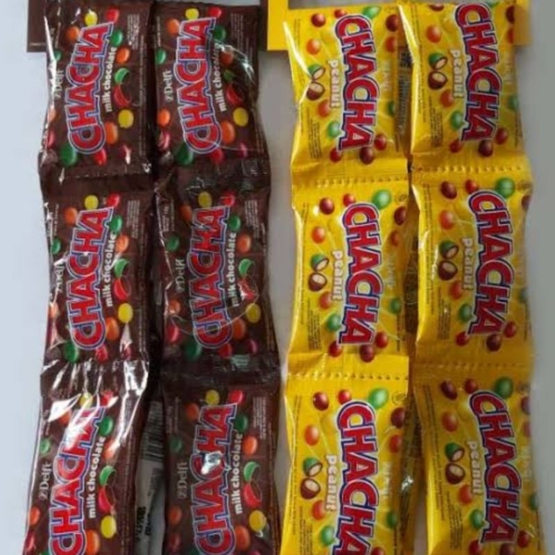 Delfi Chacha, Kemasan 1 renceng isi 10pcs x 7 gr, Varian :, Milk Chocolate : Coklat kompon butir berlapis gula denagn isi coklat susu full, dan Peanut