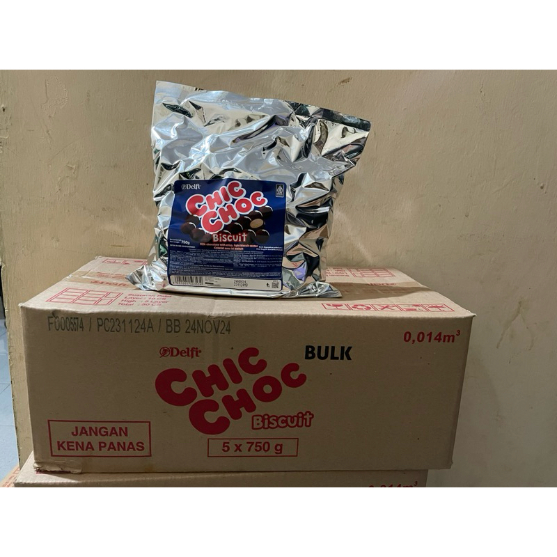DELFI CHIC CHOC dalam bentuk kartonan (dus). 1 dus berisi 5 Bag Almunium (sesuai foto) kemasan pabrik yang masing2 berisi 750gr.