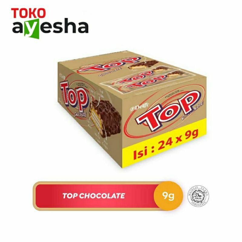Delfi Top dengan 4 varian rasa Chocolate, Strawberry, Triple Chocolate, dan Black in White. Kenikmatan wafer dengan berbagai varian rasa cream ditaburi rice crispies dan di salut coklat, sangat lezat dinikmati sebagai cemilan.