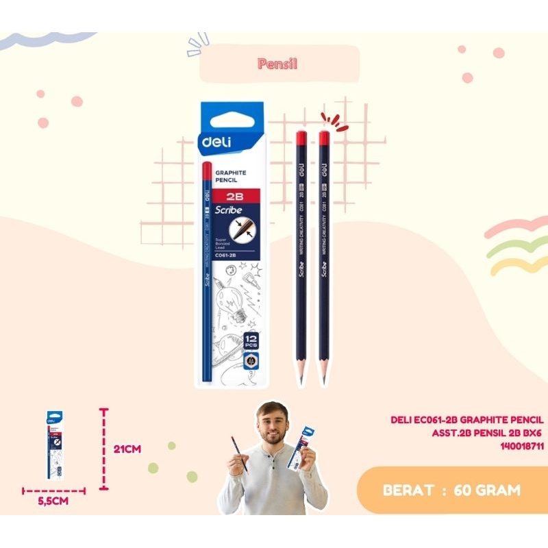 Deli Graphite Pencil 2B Pensil 2B