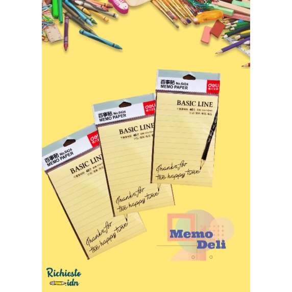 Deli Memo Paper Basic Line 6424/Catatan/Notes/St