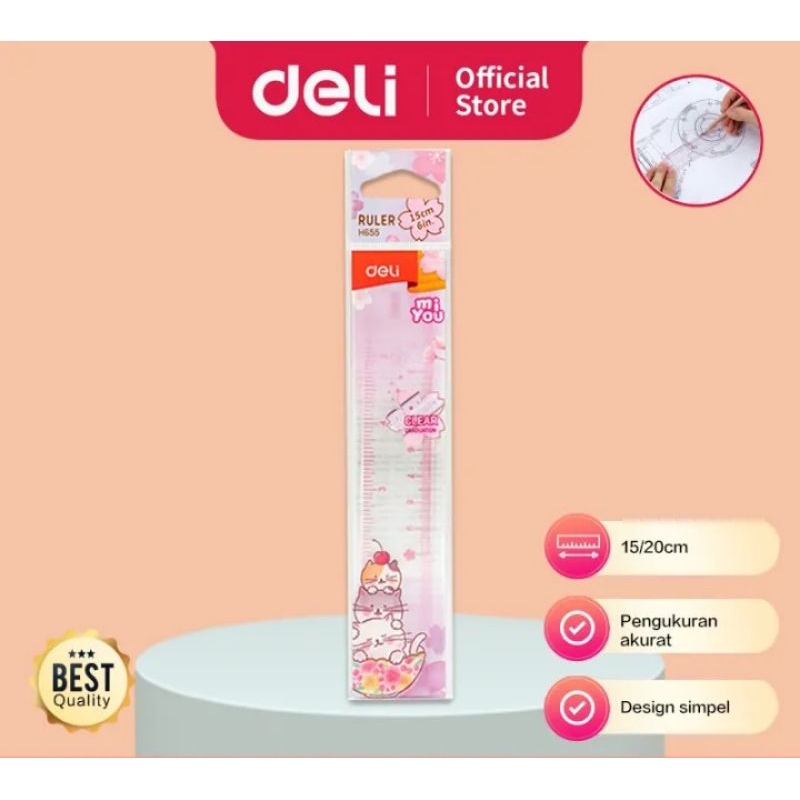 Deli Penggaris Sekolah Design Lucu/ School Straight Edge 15cm, 6Inch/ 20cm 8 inch Metric and inch graduation EH65X "