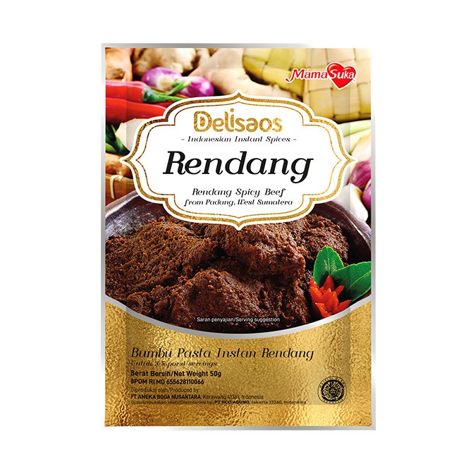 Bumbu instan Delisaos Saus Pasta Rendang MamaSuka punya rasa otentik khas masakan tradisional. Bumbu rendang ini membantu kebutuhan memasak menu rendang menjadi lebih mudah, cepat, dan nikmat. Diolah dari rendang hitam asli Padang, Sumatra Barat, bumbu MamaSuka Delisaos.
