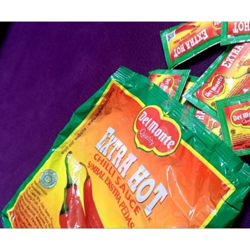 Delmonte Extra Hot Chilli Sauce Sambal Ekstra Pedas merupakan saus sambal yang terbuat dari bahan-bahan pilihan, yang mampu meningkatkan cita rasa masakan anda. Delmonte Extra Hot Chilli Sauce Sambal Ekstra Pedas ini terbuat dari cabai pilihan dipadukan dengan rempah-rempah lainnya, yang diolah menggunakan teknologi mesin modern sehingga menjamin kebersihan dan tetap terjaga cita rasanya.
