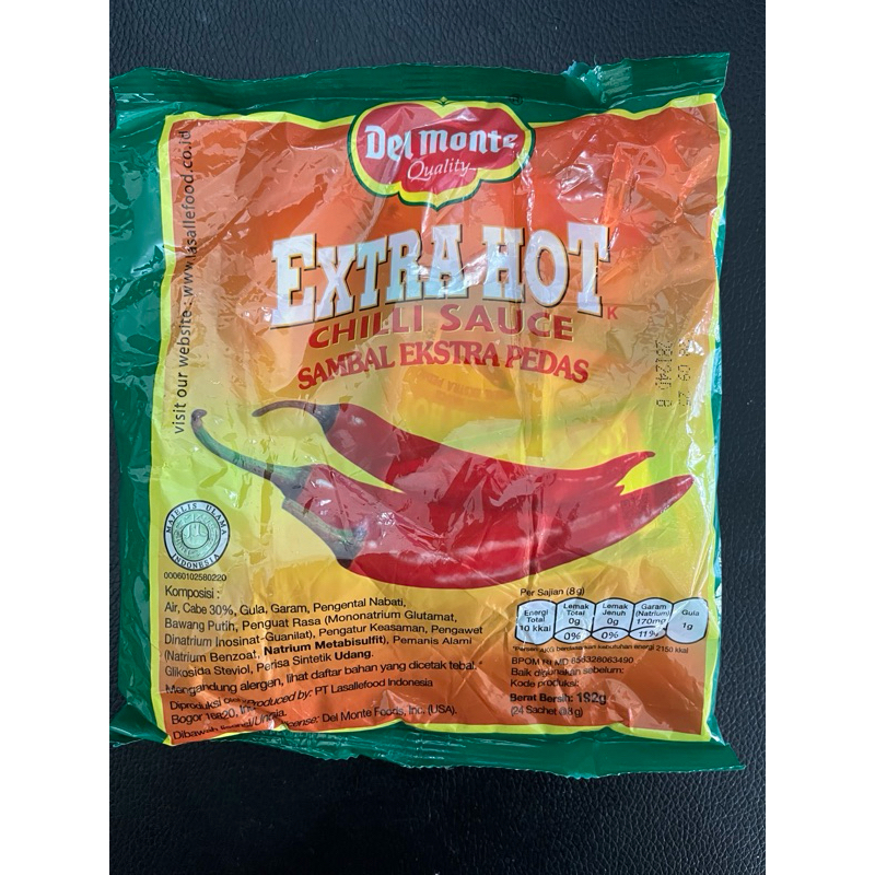 Delmonte extra hot chili sauce sambal extra pedas 192gr (isi 24 sachet)