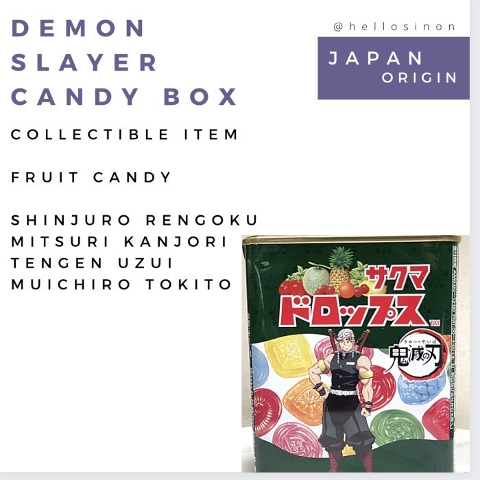 Collectible item Fruit Candy inside Exp Option Shinjuro Rengoku Mitsuri Kanjori Tengen Uzui Muichiro Tokito Giyome . Pilih sesuai variasi gambar :) boleh request foto lebih jelas No Complain