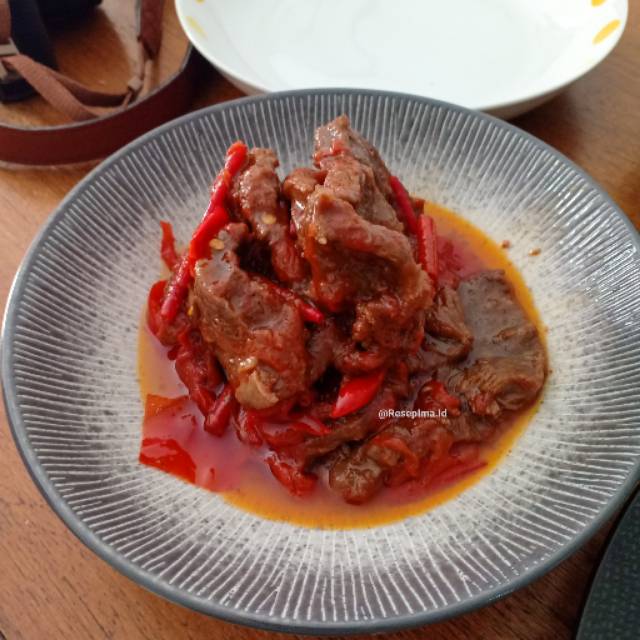 Daging yang satu ini cocok untuk teman" yang suka rasa manis gurih. Daging sapi dipotong tipis , dimasak hingga empuk bersama asam jawa dan d itemanin cabe merah. Cocok dengan nasi panas