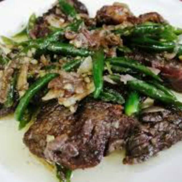 Salah satu kuliner khas minang yaitu dendeng lambok lado mudo/ dendeng basah cabe hijau.