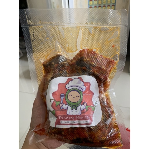 Dendeng Sapi dengan sambal bawang. Dibuat dari bahan pilihan dan homemade. Cara pembuatan secara higienis dan sesuai dengan protokol kesehatan.