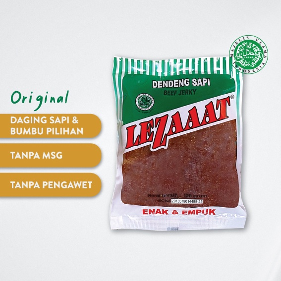Lezaaat Dendeng Sapi diolah dengan menggunakan daging sapi premium serta bahan-bahan alami pilihan. Diproduksi tanpa menggunakan bahan pengawet dan tanpa MSG sehingga Lezaaat dendeng Sapi aman dikonsumsi siapapun.