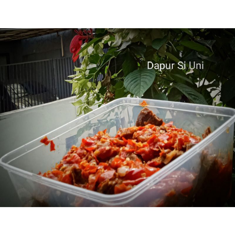 terbuat dari daging sapi segar dan cabe yang segar dan di tambah bumbu rempah, kalau soal rasa insyallah boleh di coba