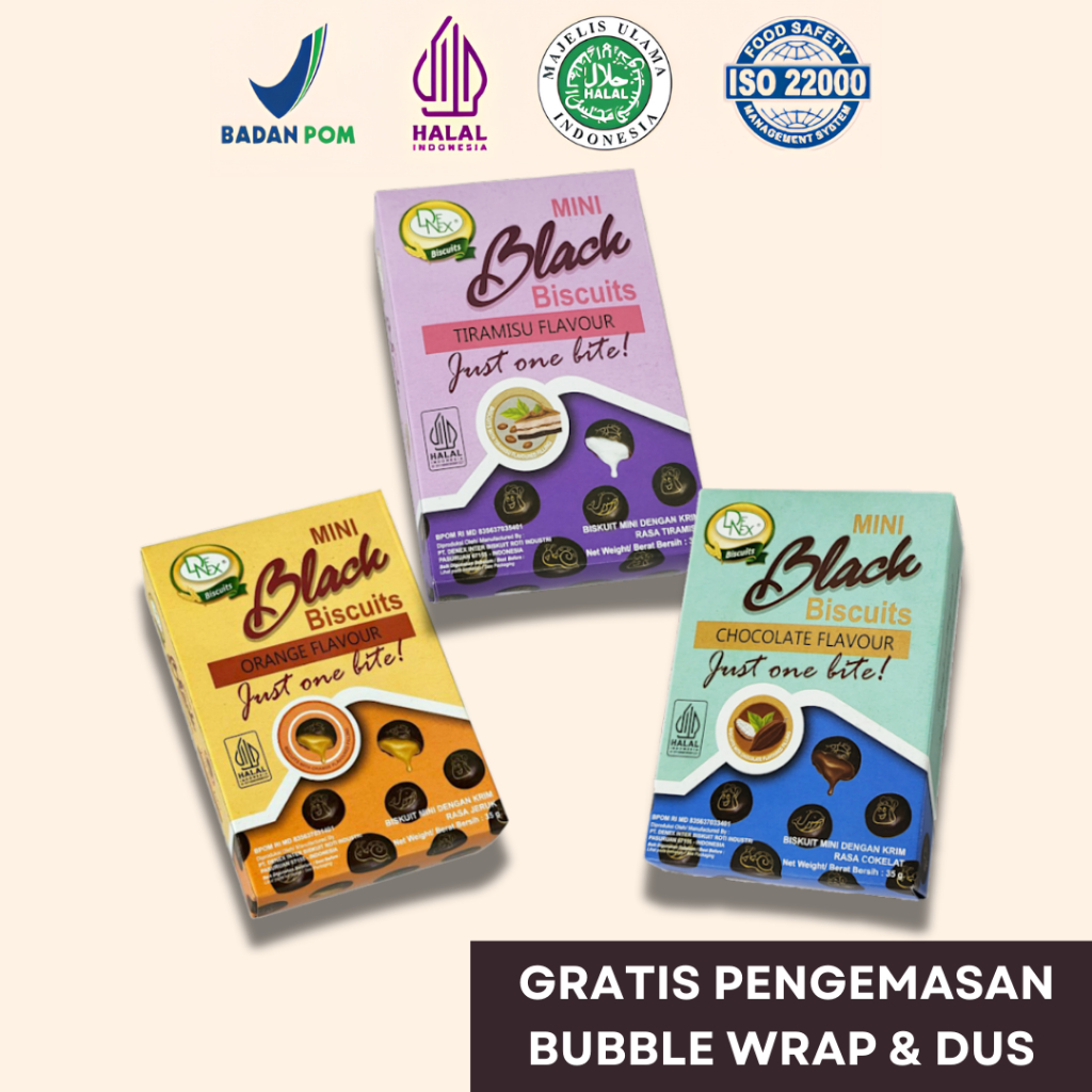 DENEX MINI BLACK BISCUITS BOX 35 GRAM (CHOCOLATE, TIRAMISU, ORANGE)