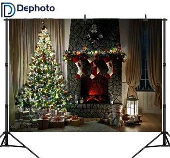Dephoto Christmas Tree Fireplace Gift carpet sock Photography Backgrounds Customized Photographic Backdrops For Photo Studio