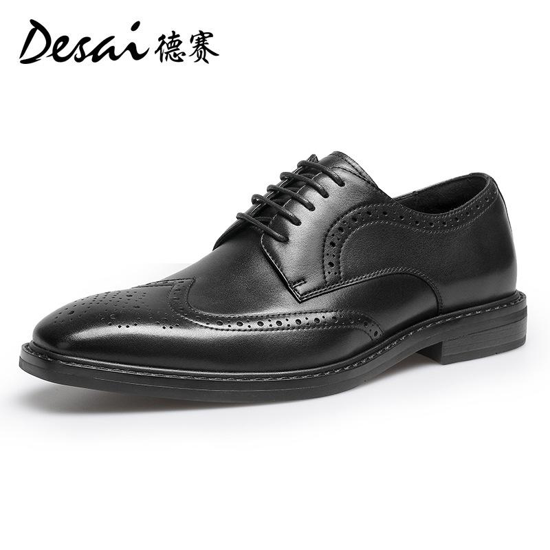 Desai кожаные туфли мужские деловые туфли дерби с гравировкой Brock кожаные ретро полированные туфли с эффектом усиления 44 чёрный