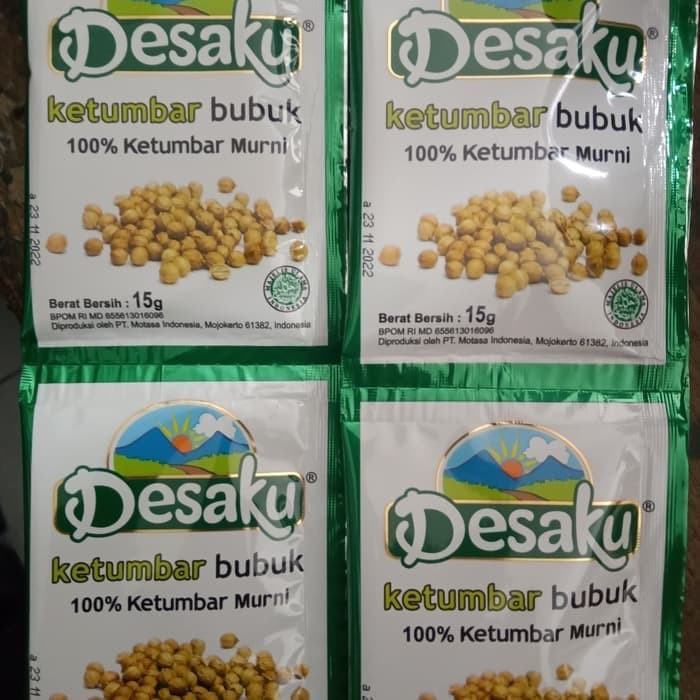 Desaku bumbu rempah asli terbuat dari bahan baku bumbu rempah berkualitas, dengan 100% ketumbar murni, harga perrenceng isi 12 sachet.