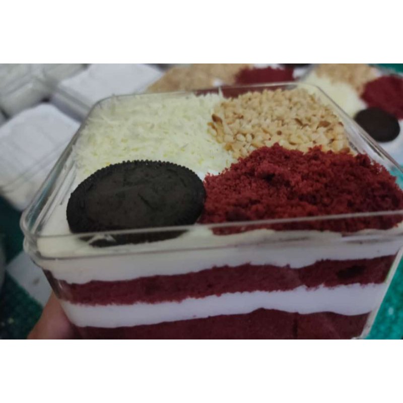 Dessert Redvelvet Box 500ml, toppingnya sesuai gambar ya