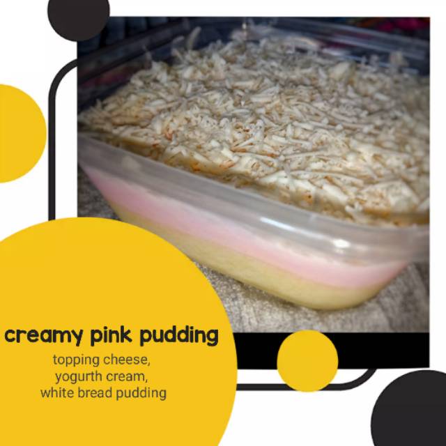 Dessert box.. Creamy pink pudding - 3 layer (cheese, cream yoghurt, white bread pudding)