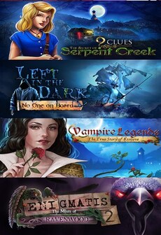 This bundle includes:Enigmatis 2: The Mists of Ravenwood9 Clues: The Secret of Serpent CreekLeft in the Dark: No One on BoardVampire Legends: The True Story of Kisilova